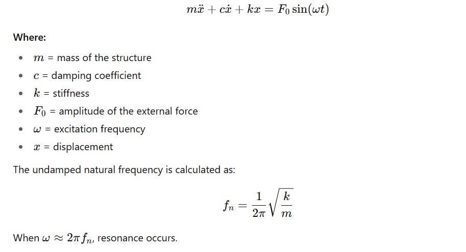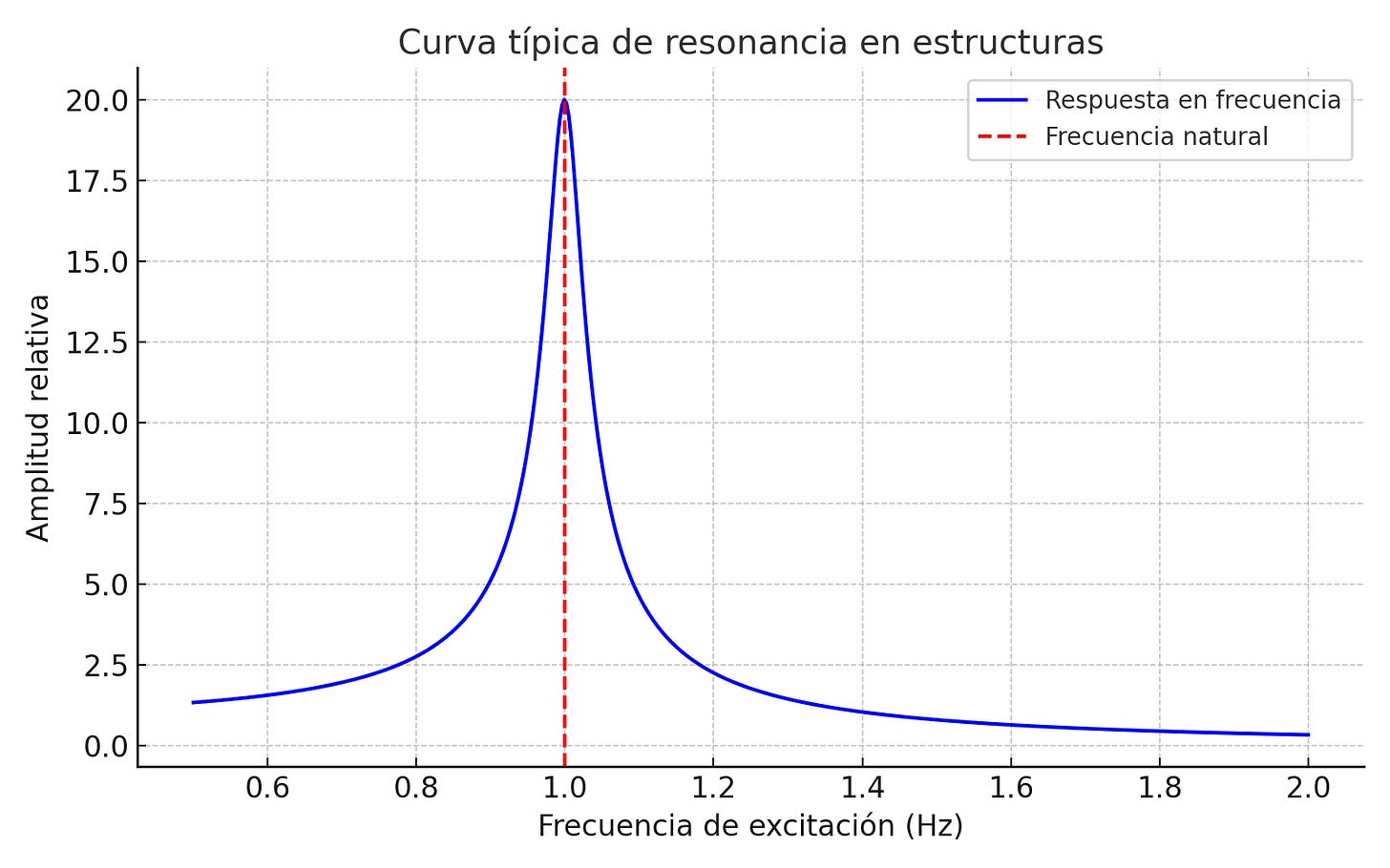 If a periodic external force (wind, traffic, seismic vibration) acts at that same frequency, the oscillation amplitude can increase significantly.